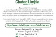 LIME S.A. E.S.P. Informa a los usuarios del Área de Servicio Exclusivo N° 2, las modificaciones en el servicio de barrido que se implementarán a partir del próximo 29 de marzo de 2021, de acuerdo al Decreto Distrital 345 de 2020.